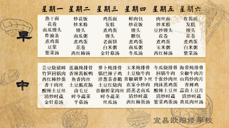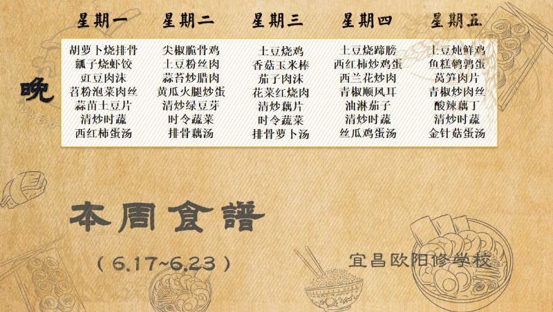 宜昌歐陽(yáng)修學(xué)校每周食譜(6月17日至6月23日)